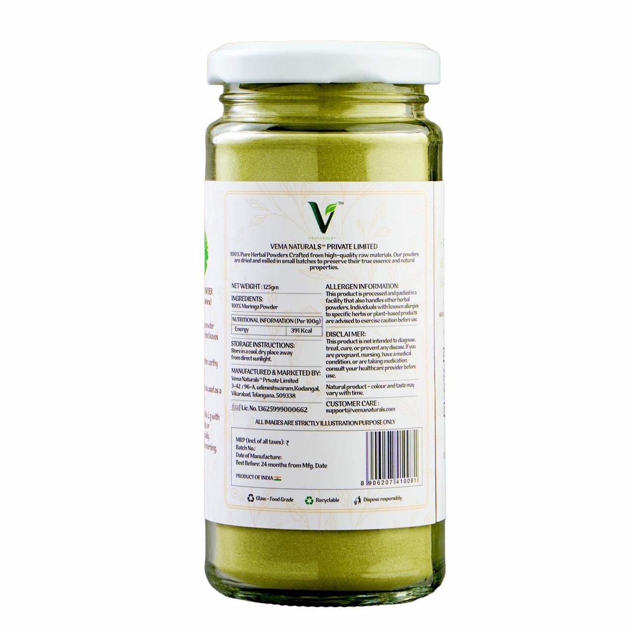 100% pure, shade-dried moringa leaf powder — a natural superfood rich in vitamins, minerals, and antioxidants to support overall wellness. Finely milled from organically grown moringa leaves No additives, preservatives, or fillers Ideal for smoothies, teas, and daily wellness routines FSSAI-tested and quality assured